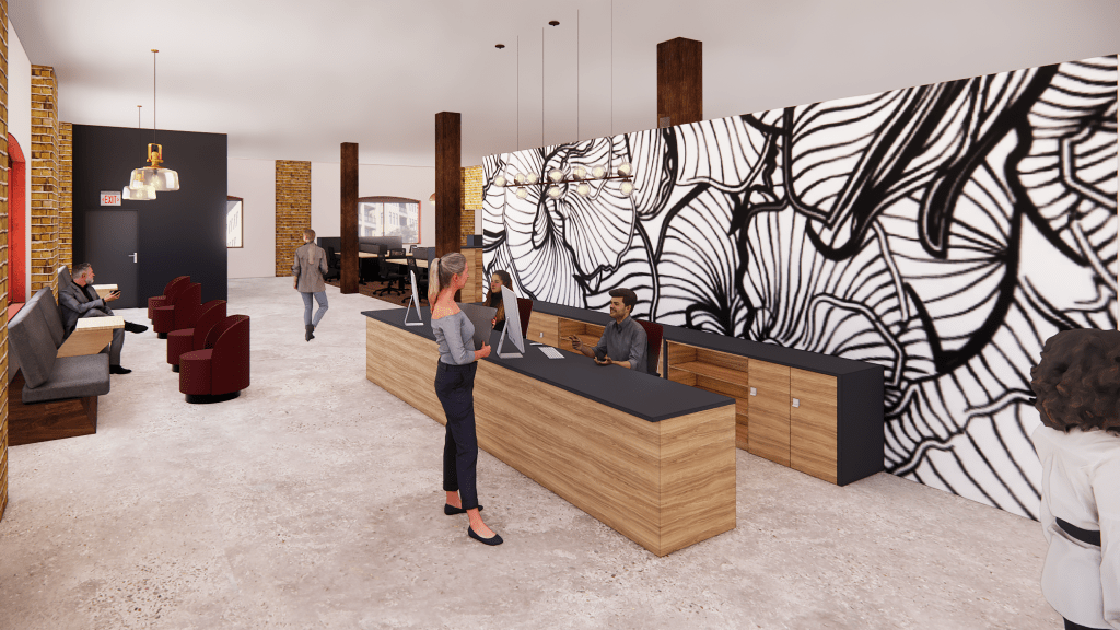 This is a year long thesis project in which I chose a three story building in Madison, WI. The address is 301 S Blount Street and is currently being used as leasable office spaces. With the location of the site being near three apartment buildings, downtown Madison, a bike trail, and a beach, I thought this location could benefit from a coffee shop and an advertising agency. My clients were the Grace Coffee Company and the Concept Company. The first floor became the cafe space along with a leasable retail space and the top two floors became the flexible office spaces for the Concept Company. With collaboration in mind, these spaces were created as a open workspace to promote creativity.